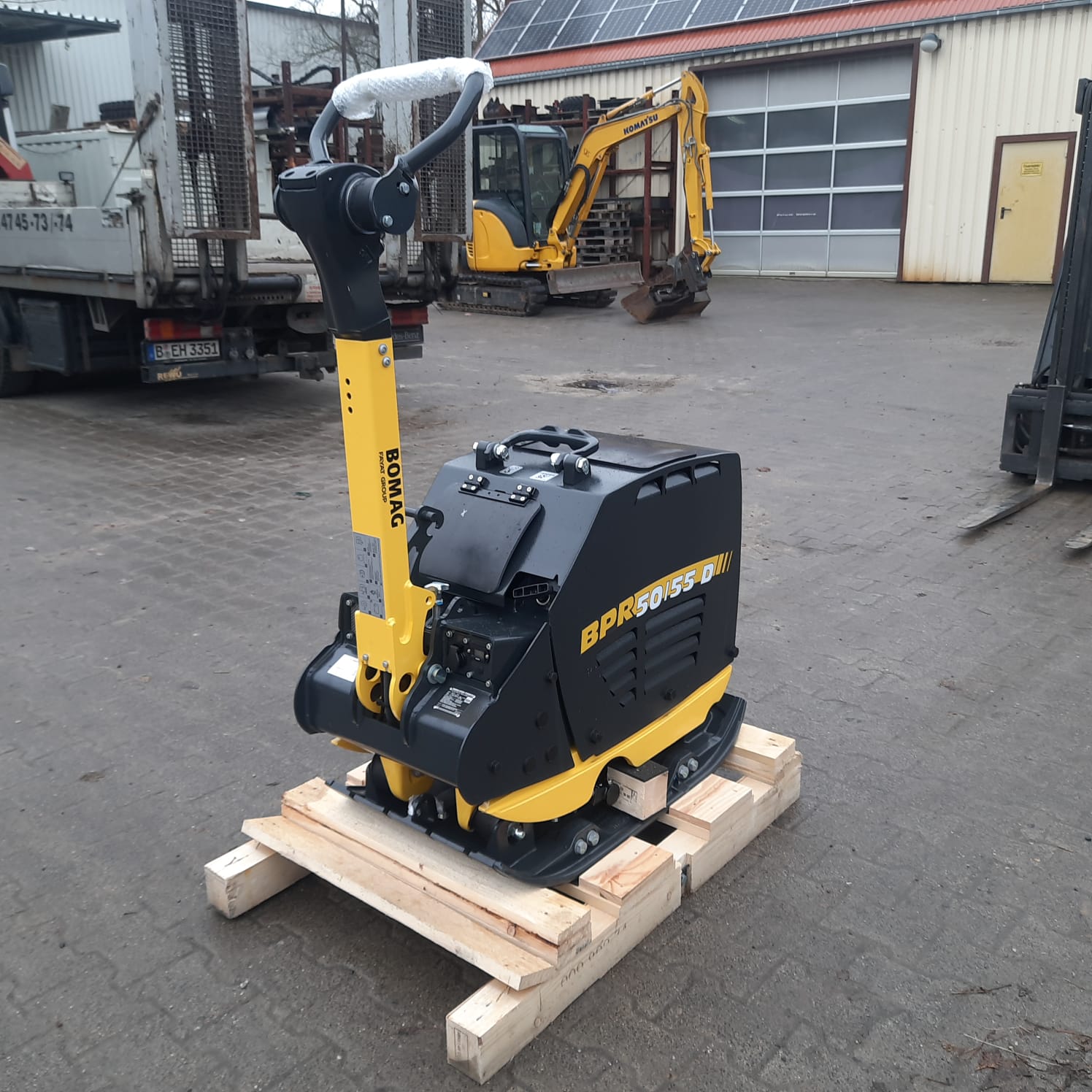 | Ausstattung | reversible Rüttelplatte inkl. Kunststoffmatte und E-Start, Sonderrabatt für angeschlagene Ecke in Grundplatte, ohne Betriebsstundenzähler |