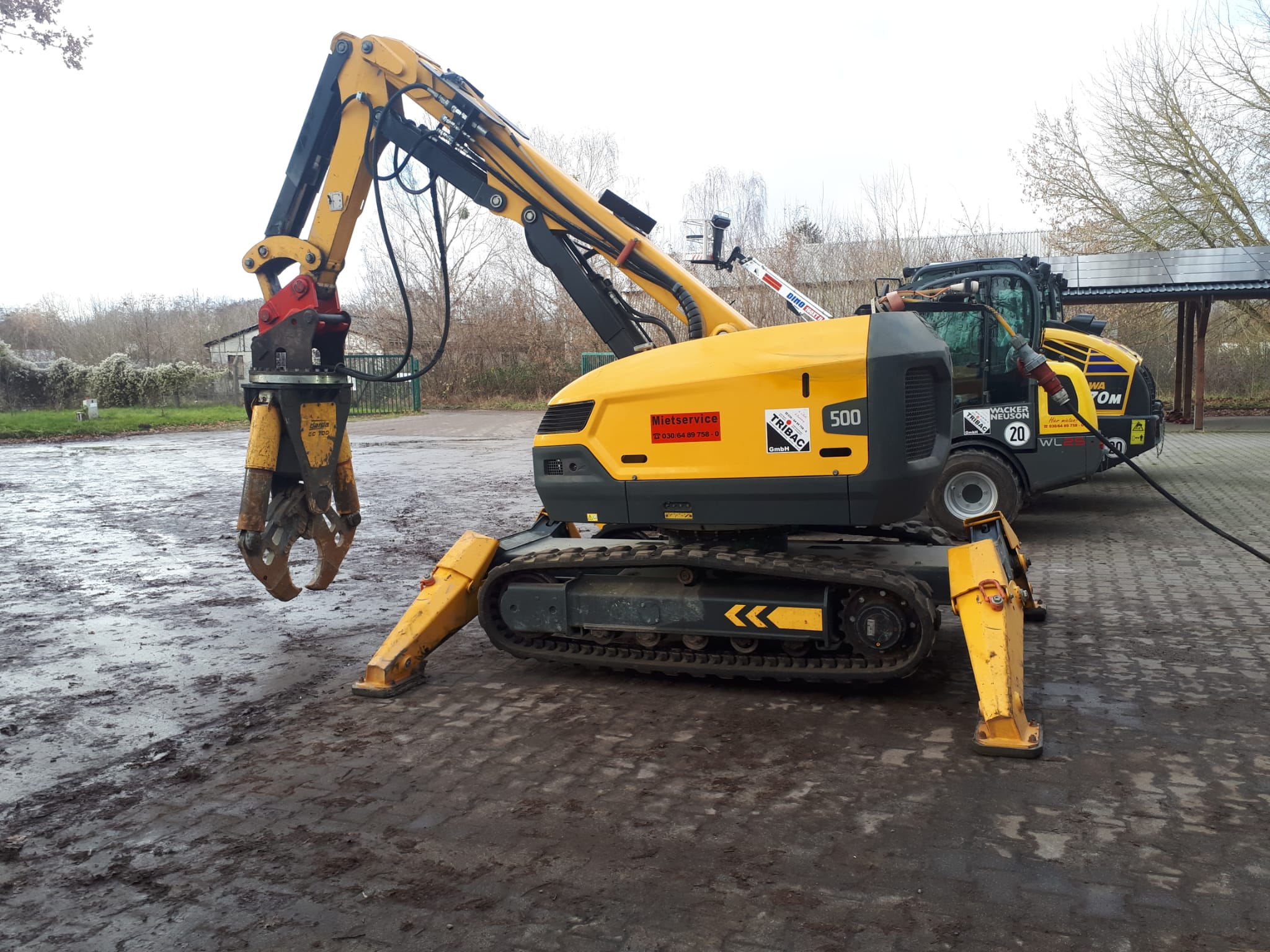 | Ausstattung | SWS MS08, Schutzabdeckung Zylinder, Schmiereinrichtung Hydraulikhammer, Leckölleitung Fräse, Zusatzsteuerkreis Zange Drehen (für Stahlschere oder Abbruch- und Sortiergreifer), Gummiketten, Vorrüstung Wasseranschluss zur Staubunterdrückung und 2D-Baggersteuerung, 4 Zurrösen an Stützfüßen, Zustand gut, mechanical quick change Lehnhoff MS08 or quick change for Brokk, cylinder protection, lubrication for hammer, overflow oil line for drum cutter, additional hydraulic circuit for rotating concrete crusher, rubber tracks, prepared for water connection for dust reduction and prepared for 2D-automation, condition good |