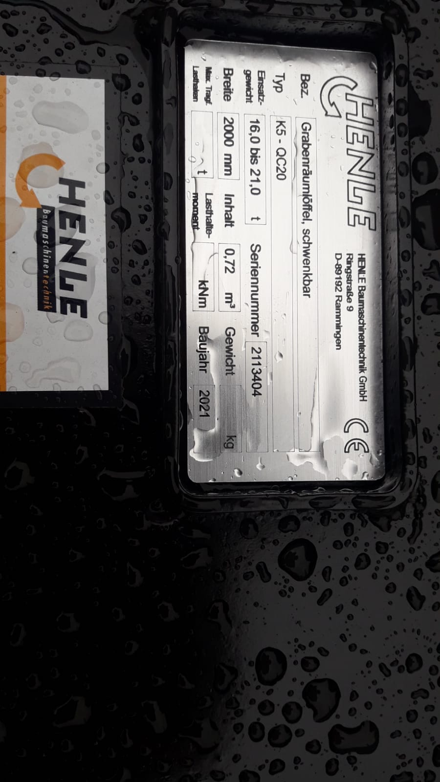 | Ausstattung | Grabenräumwanne mit Lehnhoff MS20/21, Einsatzgewicht 16t bis 21t z.B. PW160, Schnittbreite: 2000mm, Inhalt/SAE: 0,72m³, schwenkbar 2 Zylinder 2*45°, mit Rückenschneide, incl. Sperrventil mit Überdruckfunktion |