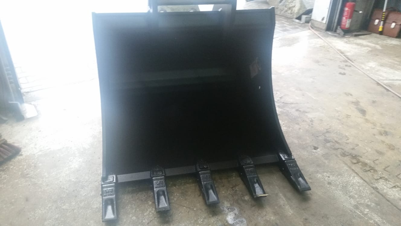 | Ausstattung | Tieflöffel mit MS20/21, Einsatzgewicht 12t bis 16t z.B. PW160, Schnittbreite: 1200mm, Inhalt/SAE: 0,806m³, 5 Zähne System Cat J300, Boden 10mm HARDOX, Seitenteile 8mm, Seitenschneide 20mm HARDOX, Messer 30mm HB400, seitliche Verschleißplatte 10mm HARDOXSeitenteile auf Boden gestellt |
