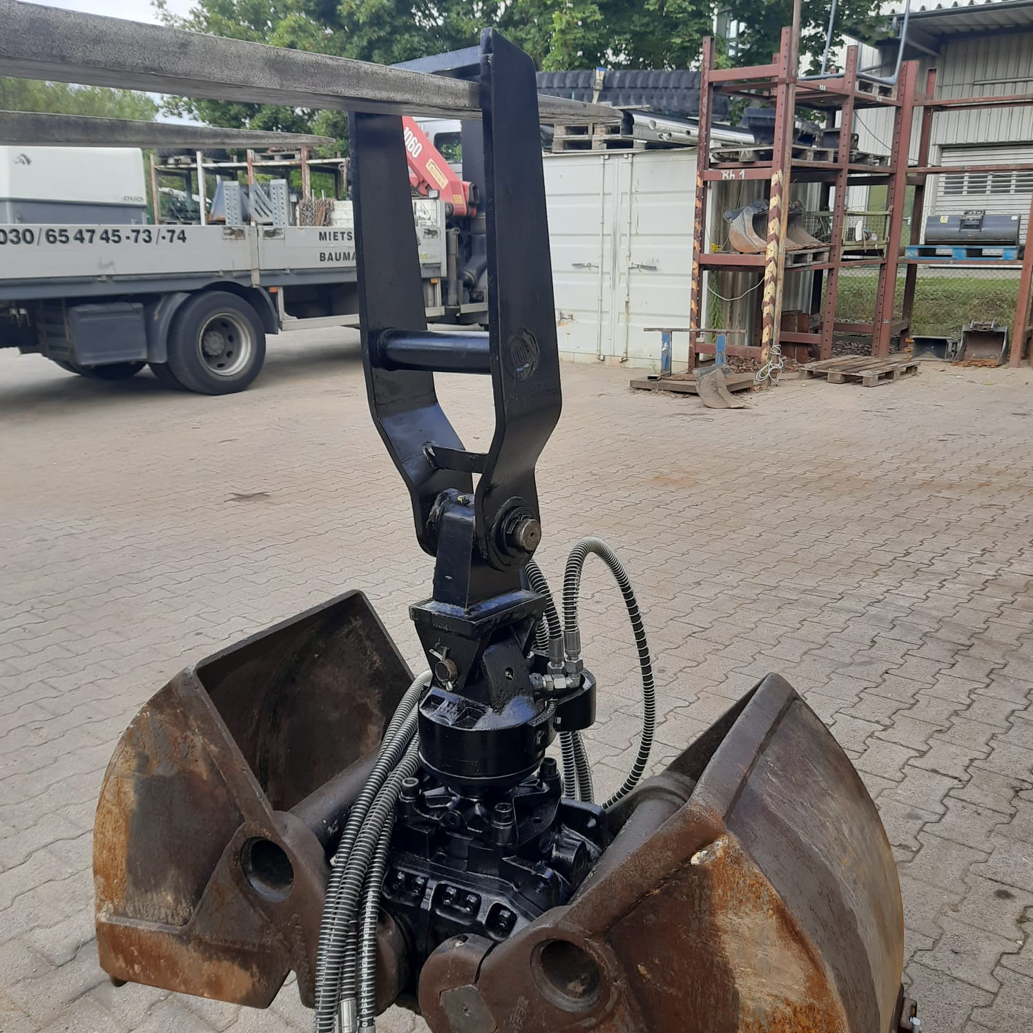 | Ausstattung | endlos drehbar, inkl. Kopfplatte MS03 mit Kreuzgelenk und Pendelbremse, Hydraulikschläuchen und Kupplungen (neu in 09/2020), optional Auswerfer und Wechselschalen |