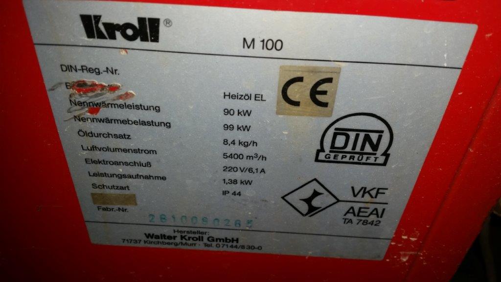 | Ausstattung | Heizöl, 230V, Dem Baujahr entsprechend gut erhalten. Gerät war sehr selten im Einsatz. Schläuche werden altersbedingt porös. Um Ausfallzeiten vorzubeugen, empfiehlt sich ein Ersatzgerät. |