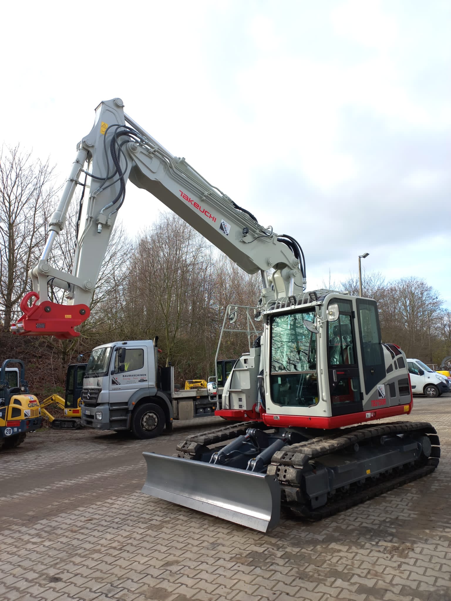 | Ausstattung | V2 inkl. hydraulischem Schnellwechsel HS10, Geo-Grip-Ketten, Zentralschmieranlage, aktiver Dieselpartikelfilter, AdBlue, DOC, Verstellausleger |