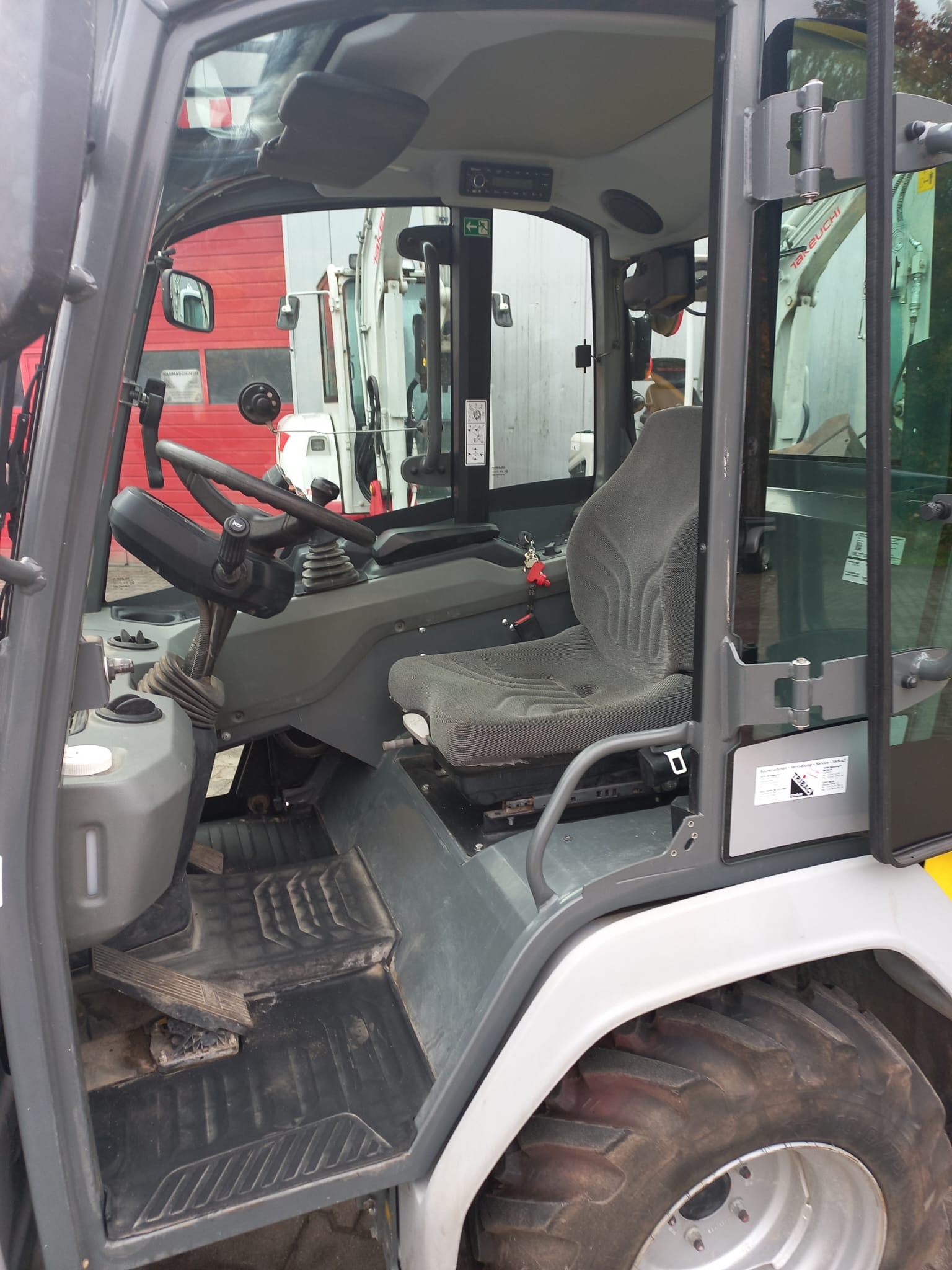 | Ausstattung | KramerAllrad 5040, 28,5kW/38,8PS Yanmar-Dieselmotor S5/T4F, mit Niedrigkabine und Heizung, 20km/h, Bereifung Mitas TS-05 10.0/75-15.3, Arbeitsscheinwerfer vorn und hinten, Batterietrennschalter, Radioanlage, Druckentlastung 3. Steuerkreis, Differentialsperre (Mengenteiler), Unterfahrschutz, Steckdose für Frontanbaugeräte, Rangierkupplung, HighFlow 60 L/min max. Pumpenleistung, Standardschaufel und Palettengabel 800mm, Leckölleitung z.B. für Mulcher oder Betonmischschaufel |