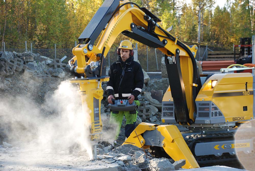 Abbruch auf höchstem Niveau | Lassen Sie sich von der Größe nicht täuschen. Der Brokk 160 stellt einen großen Entwicklungssprung dar, wenn es um geringe Größe und dennoch eindrucksvolle Kraft geht. Die leichte ferngesteuerte Abbruchmachine mit ihrem kraftvoller Elektromotor entwickelt eine große Kraft (406 KJ). Durchgängig steht bei der gesamten Maschinenreihe der ferngesteuerten Abbruchroboter Sicherheit an erster Stelle. Die hochmoderne digitale Fernsteuerung erhöht die Arbeitssicherheit bei Abbrucharbeiten, da sie aus sicherer Entfernung und mit hoher Präzision zu steuern ist.