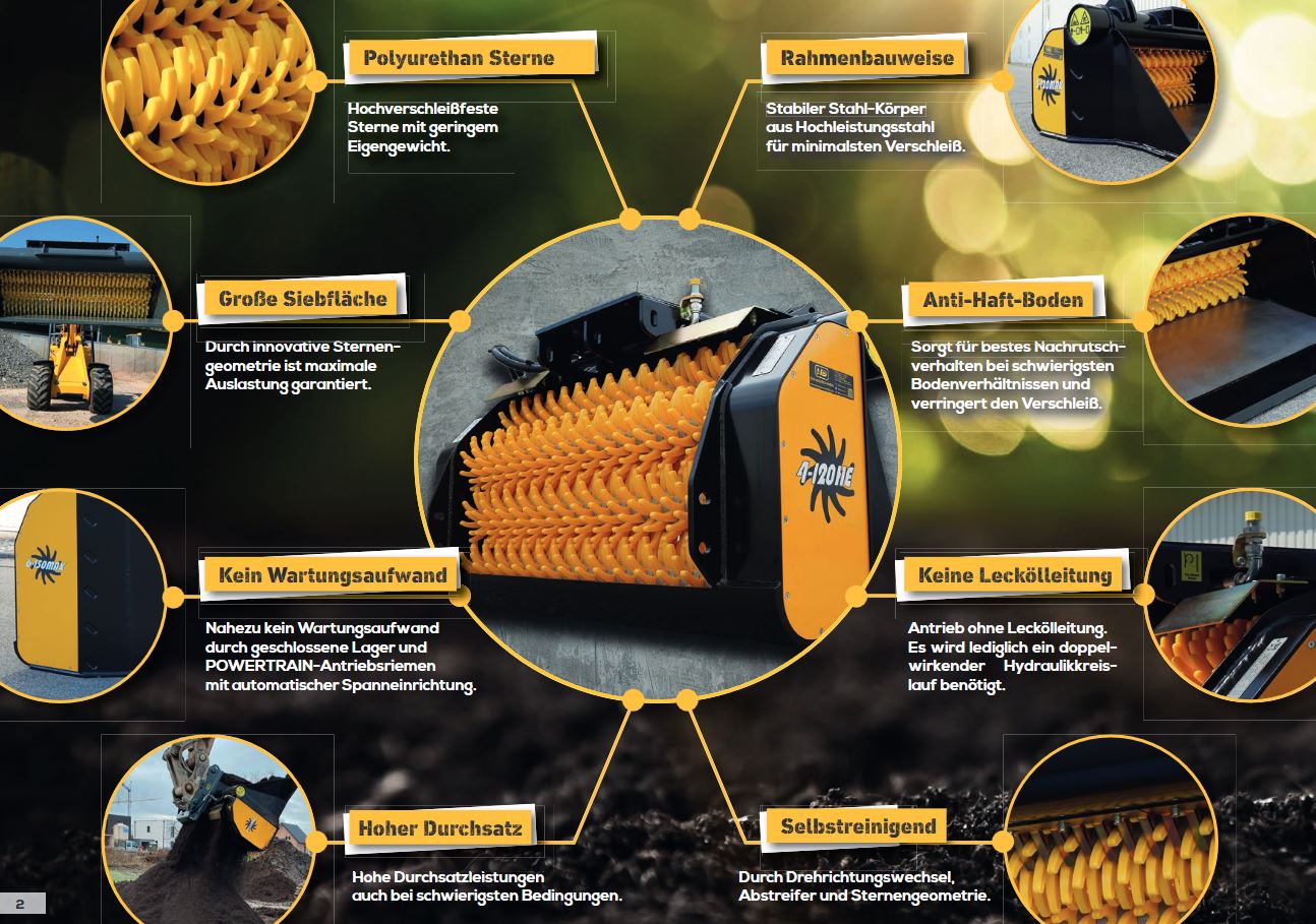 Die innovativen GYRU-Star Schaufelseparatoren sind Ihrer Zeit voraus. Die hochverschleißfesten Sterne aus Polyurethan ermöglichen die Kombination von geringem Eigengewicht mit einem robusten Schaufelkörper bei überdurchschnittlicher Leistungsfähigkeit.