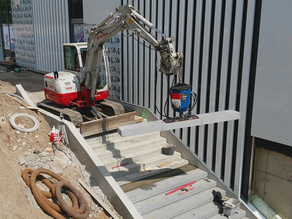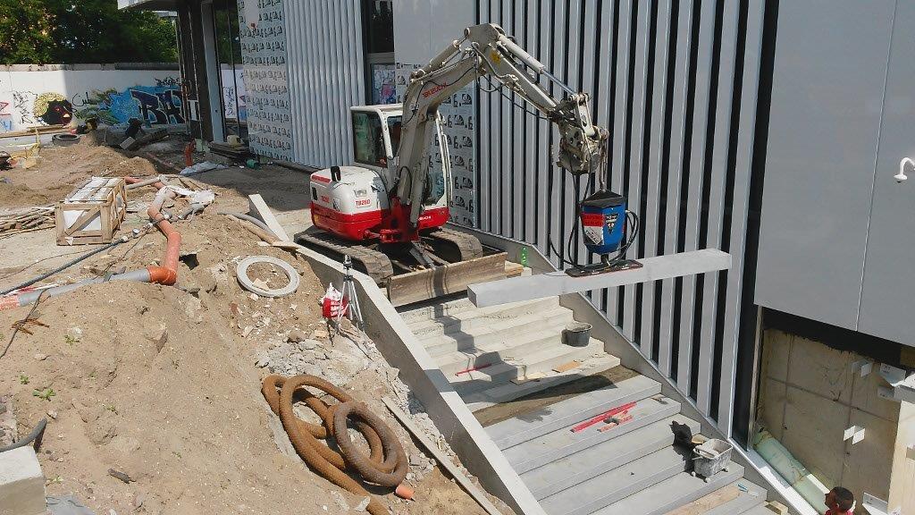 Durch den fest eingebauten Dieselpartikelfilter darf die Maschine auf Baustellen der öffentlichen Hand Berlins eingesetzt werden.