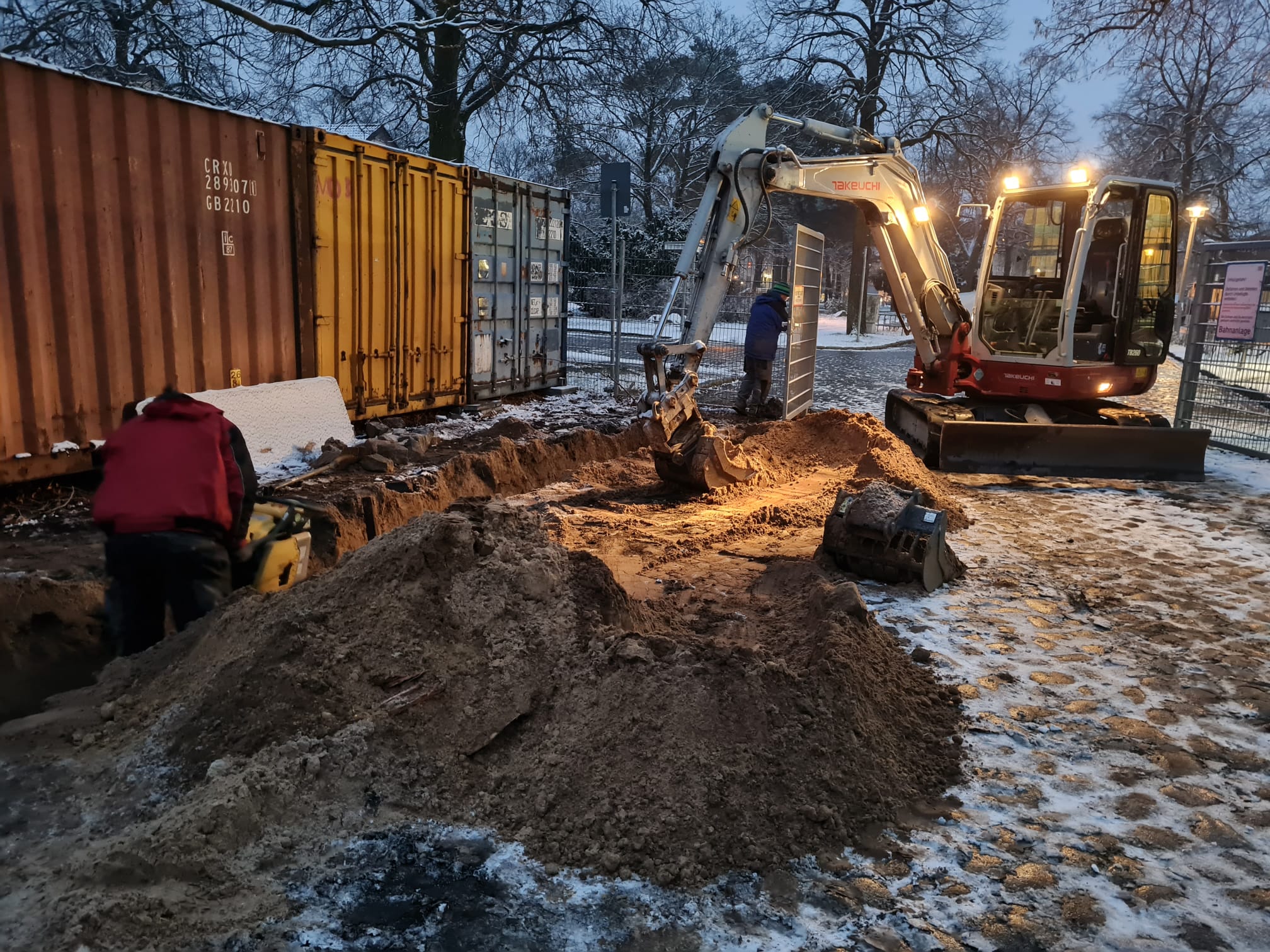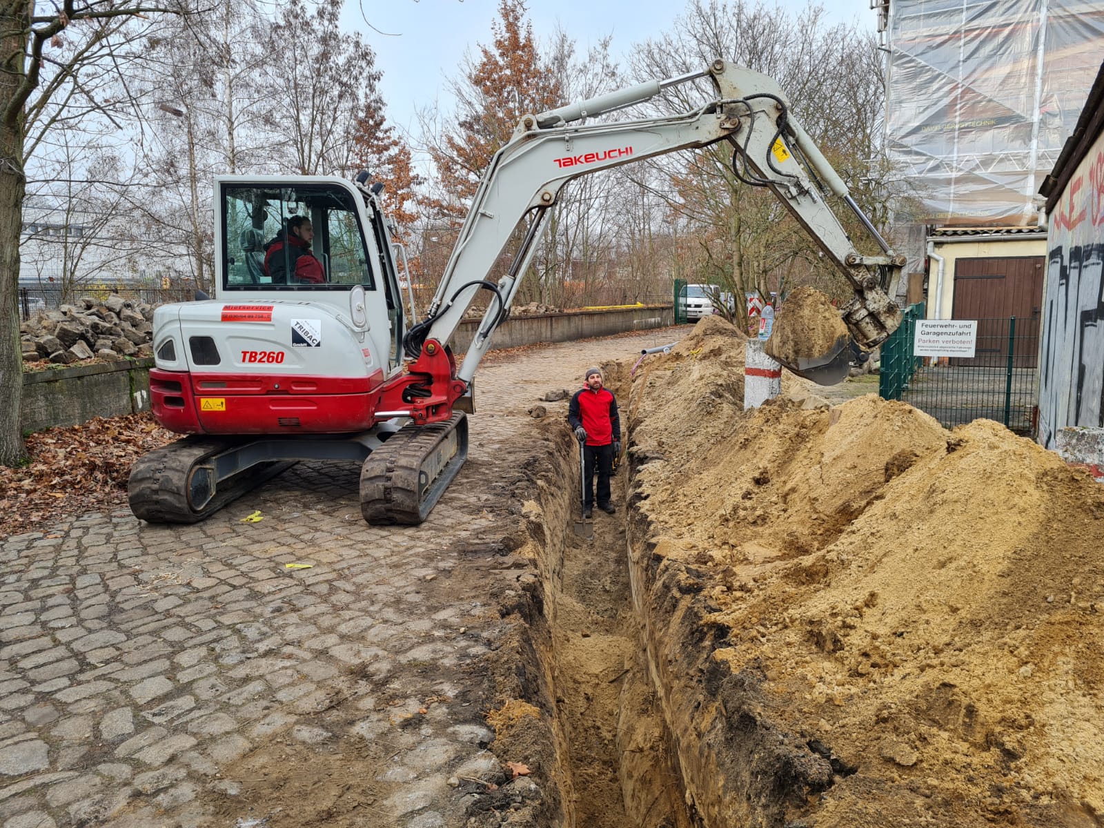Der Schwenkbock ermöglicht ein versetztes Schachten parallel an Häuserwänden entlang.