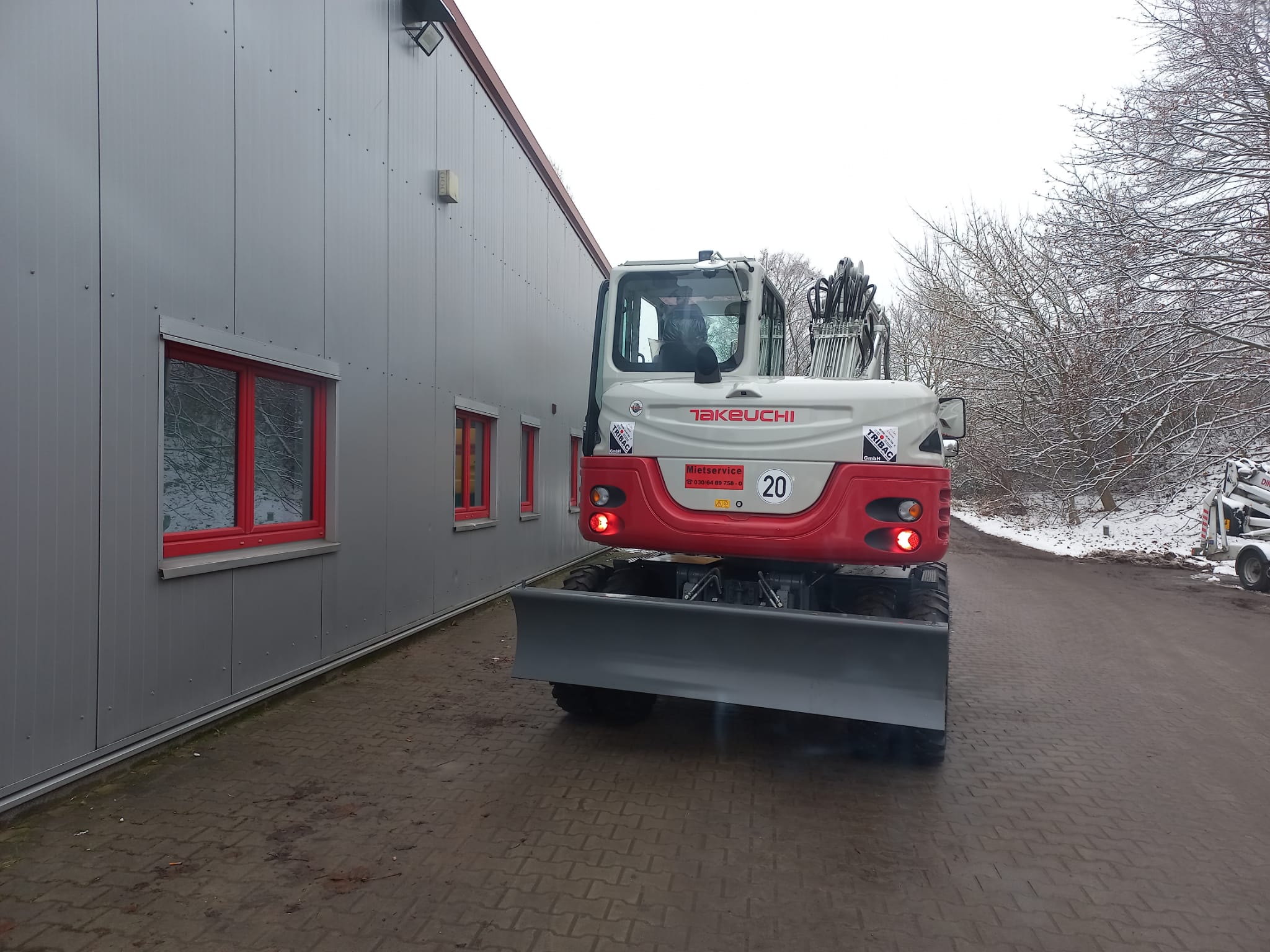 | Ausstattung | V4, mit hydraulischem Schnellwechsel HS08 und Powertilt, mit elektr. Powertiltumschaltung, StVZO-Zulassung, Dieselpartikelfilter (DPF), inklusive starre Grabenräumwanne und Tieflöffel 800mm mit Zähnen |
