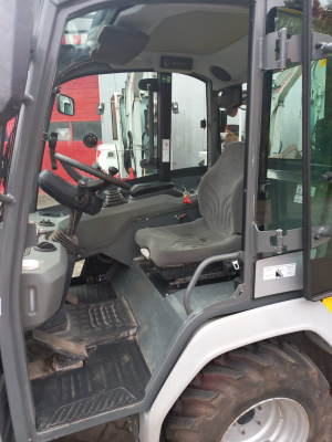Ausstattung | KramerAllrad 5040, 28,5kW/38,8PS Yanmar-Dieselmotor S5/T4F, mit Niedrigkabine und Heizung, 20km/h, Bereifung Mitas TS-05 10.0/75-15.3, Arbeitsscheinwerfer vorn und hinten, Batterietrennschalter, Radioanlage, Druckentlastung 3. Steuerkreis, Differentialsperre (Mengenteiler), Unterfahrschutz, Steckdose für Frontanbaugeräte, Rangierkupplung, HighFlow 60 L/min max. Pumpenleistung, Standardschaufel und Palettengabel 800mm, Leckölleitung z.B. für Mulcher oder Betonmischschaufel |