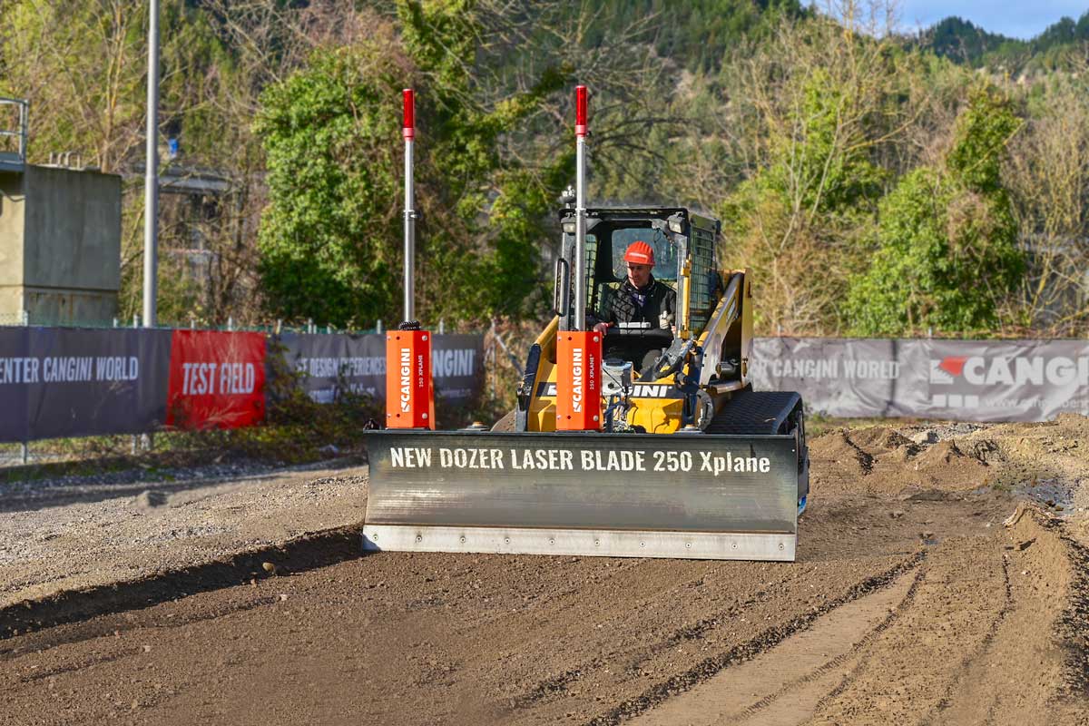 Das mit 2 Laserempfängern ausgestattete Planierschild steuert automatisch, schnell und präzise die Höhe und die Neigung des Schildes und ermöglicht damit das exakte Planieren großer Flächen wie z.B. bei Erstellung von Industriehallen, Lagergebäuden, Sportstätten, Reitplätzen sowie im GaLaBau.