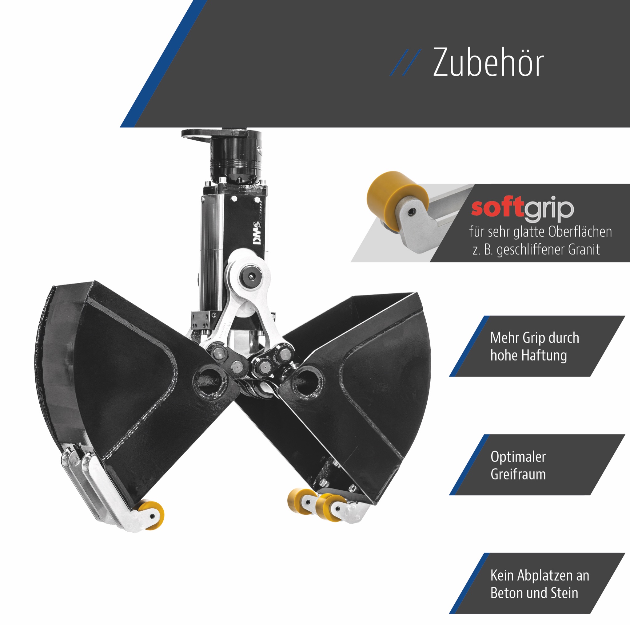 Der Softgrip macht es möglich! Im Handumdrehen können Sie den DMS Sortiergreifer als Steinsetzzange verwenden!