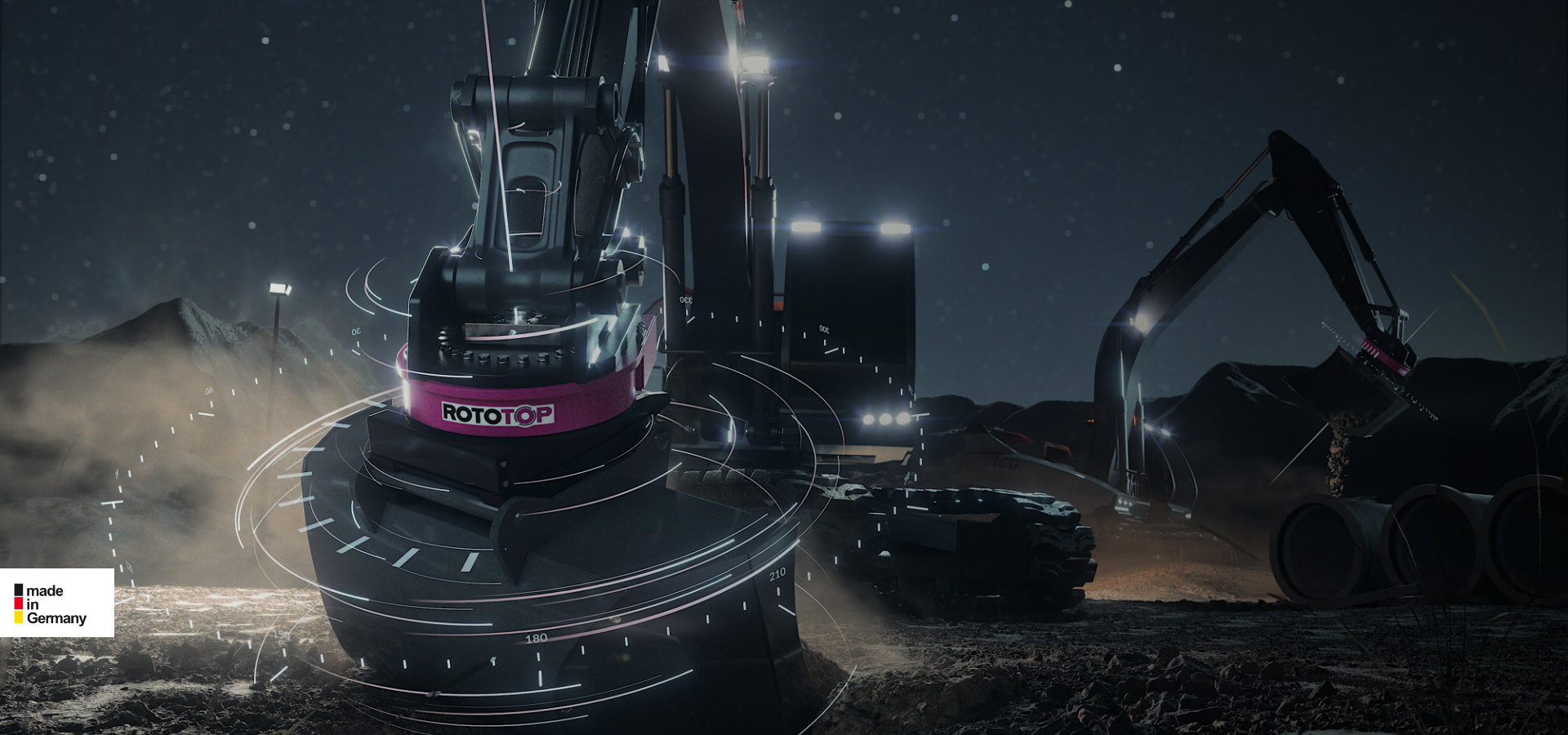 Der ROTOTOP® ist einfach zu bedienen - jeder Baggerfahrer kann in kürzester Zeit damit produktiv arbeiten. Mit dem ROTOTOP® und der vorhandenen Baggerkinematik lassen sich über 90 % der Bewegungen eines Tiltrotators abbilden. Für die Praxis bedeutet das unterm Strich: Im konventionellen Erdbau/Kanalbau/GaLaBau ist die reine Rotation überwiegend die wirtschaftlichste Lösung.