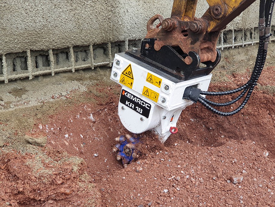 Die klassischen Querschneidkopffräsen KR von KEMROC. Besonders robust gebaut, sind sie die idealen Anbauwerkzeuge für Trägergeräte mit kurzem Ausleger an beengten Einsatzorten – insbesondere im Tunnelbau – sowie für vibrations- und geräuscharme Abbrucharbeiten von bewehrtem Beton.