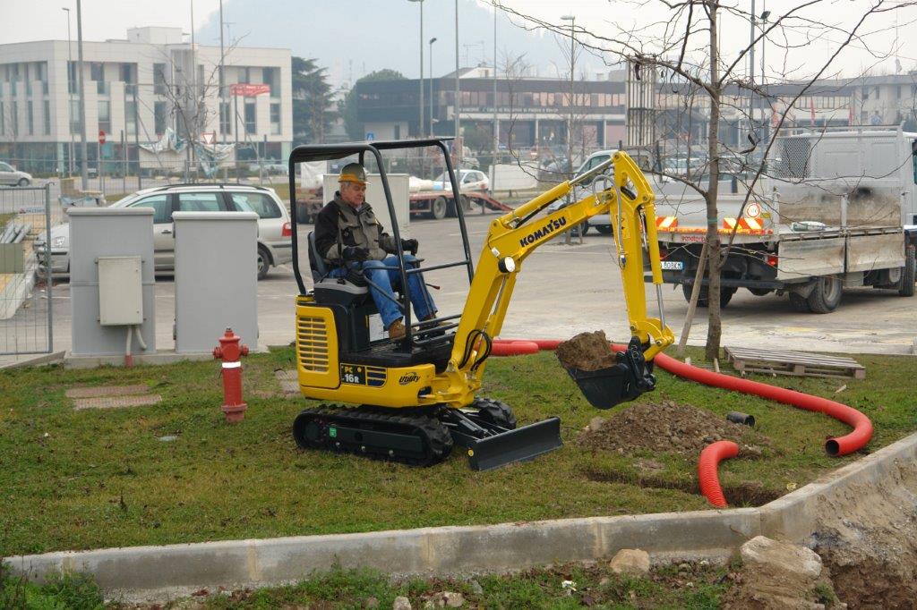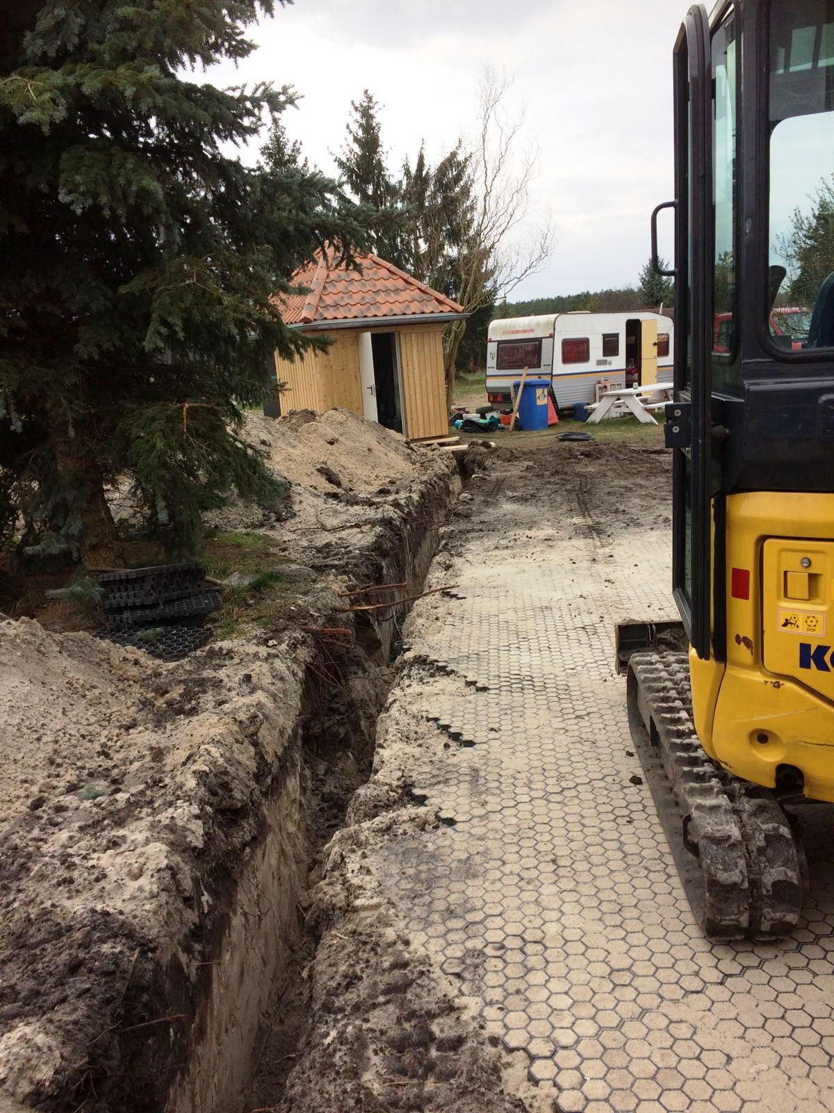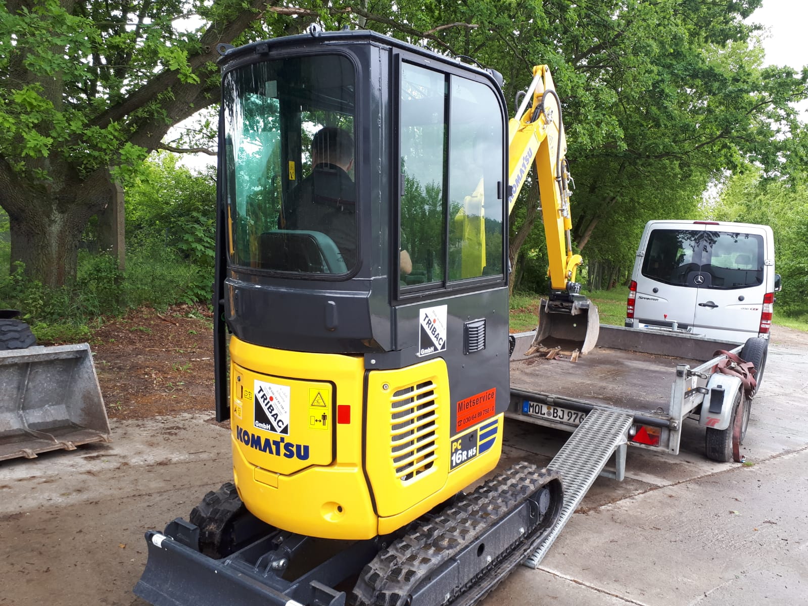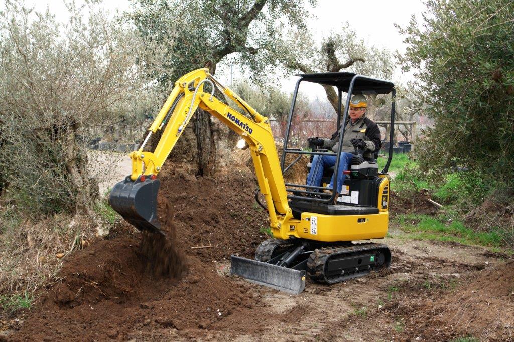 Der kompakte Minibagger ist ideal für kleinere Arbeiten rund um Haus und Garten, z.B. für Gräben für Telefonleitungen oder Wasserleitungen.