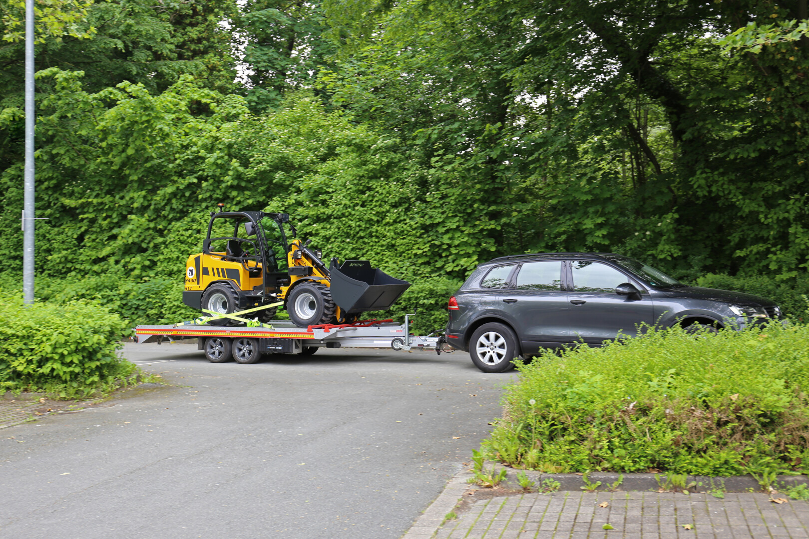 Der Radlader kann mit einer normalen PKW-Fahrerlaubnis selbst zum Bauvorhaben verfahren werden.