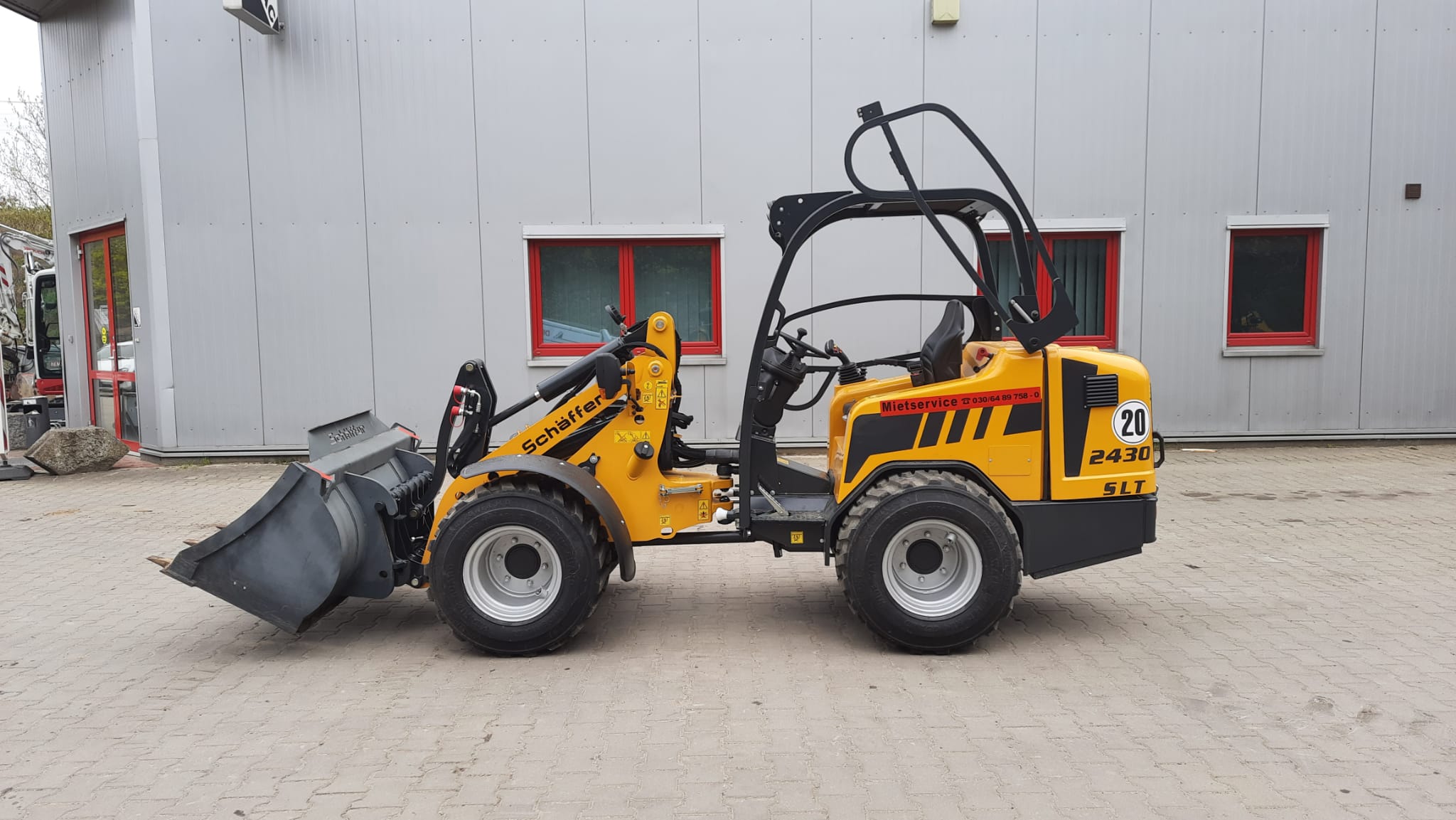 Der Schäffer 2430 (SLT) plaziert sich als äußerst vielseitiger und effizienter Kompakt-Radlader am Markt. Das Einsatzgewicht beträgt je nach Ausstattung zwischen 2,4 und 2,6 t. Trotz dieses sehr niedrigen Gewichts ist die Maschine in der Lage, bis zu 1,9 t schwere Pflastersteinpaletten zu verfahren.