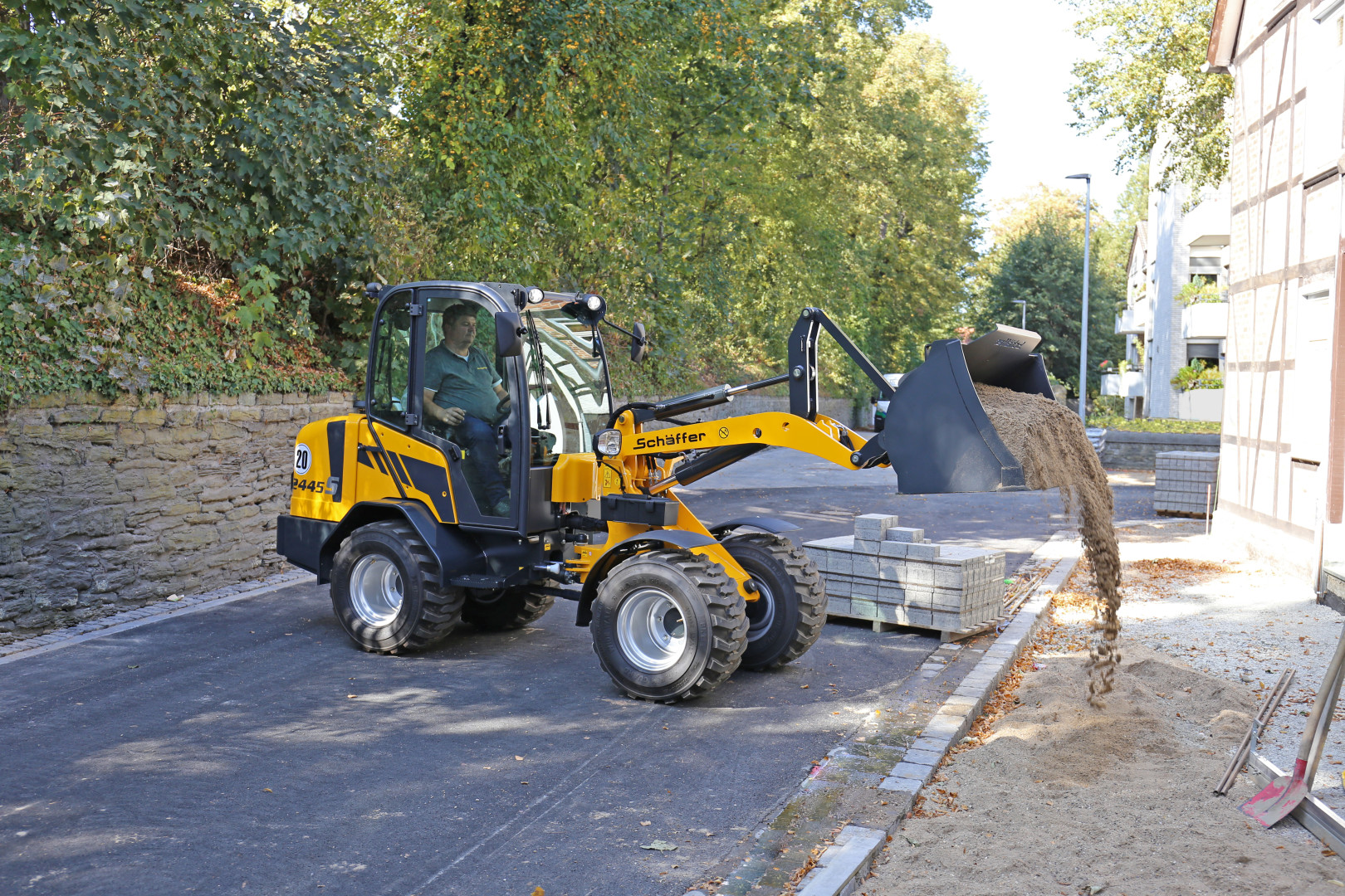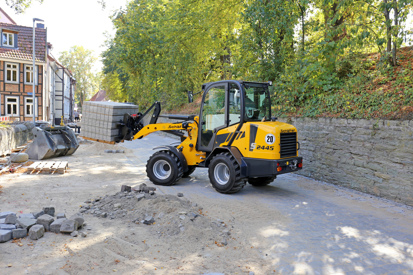 Die Maschine 2445 gehört zu den beliebtesten Ladern im Schäffer-Baumaschinenprogramm. Das Nachfolgemodell 2445 S ist dank eines stärkeren Motors (35 kW, 50 PS) und des elektronisch geregelte Fahrantriebs noch agiler unterwegs – und das bei 10% weniger Dieselverbrauch pro Kilowattstunde. Der 2445 S ist wahlweise mit Fahrerschutzdach oder Kabine erhältlich.