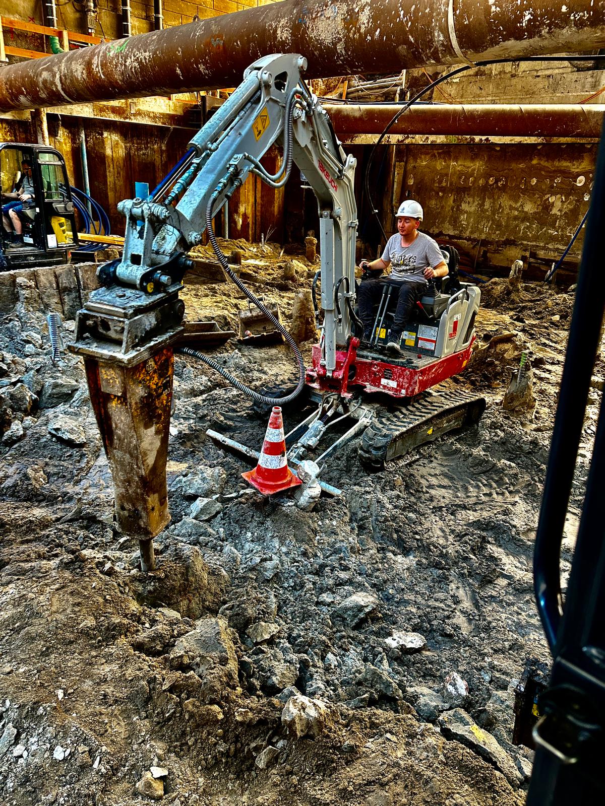 Der Schwenkbock ermöglicht ein versetztes Schachten parallel an Häuserwänden entlang.