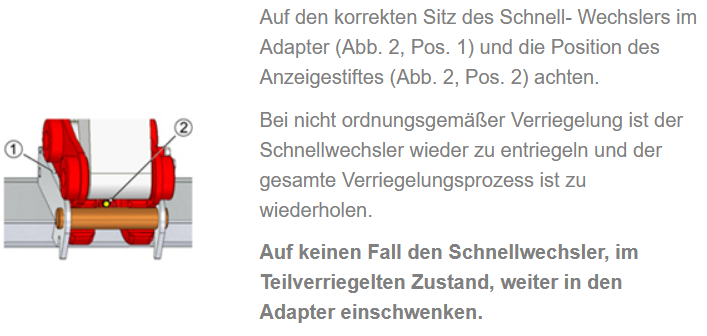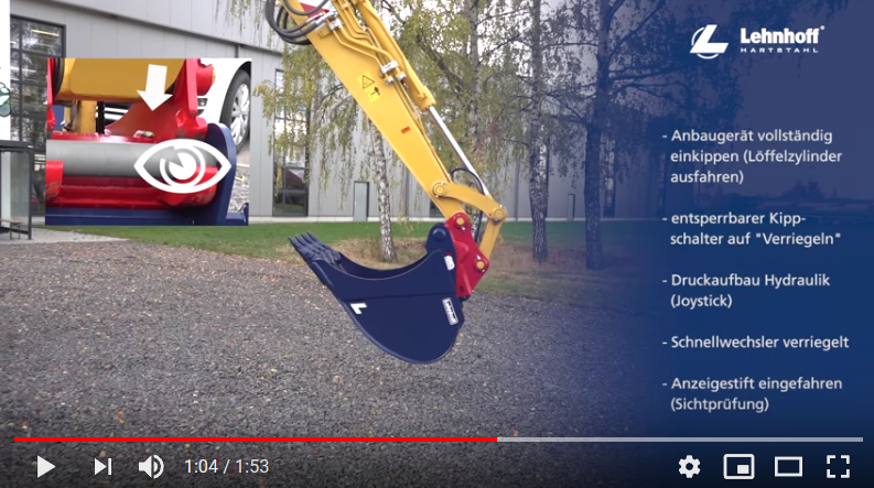 Zum hydr. Schnellwechselsystem Lehnhoff HS08 bitte unbedingt die Sicherheitshinweise (Anzeigestift eingefahren + Drucktest) beachten. Video unter: https://youtu.be/BSs1OdYjdDA